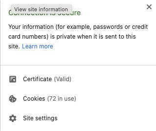 This information can be crossed checked by going to the web browser and clicking on the Secure HTTP (HTTPS) lock icon in the corner of the address bar.